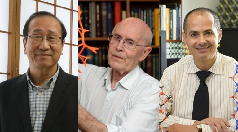Los tres galardonados, de izquierda a derecha: Susumu Kitagawa, Richard Robson y Omar M. Yaghi. / Royal Society | University of Melbourne | Royal Society.