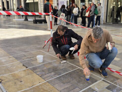 Ciencia a pie de calle: aplican un producto antideslizante para evitar caídas y resbalones durante la Semana Santa